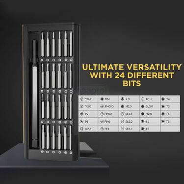 This set provides a wide variety of bits, allowing users to perform quick and easy repairs on various devices such as phones, laptops, and watches.