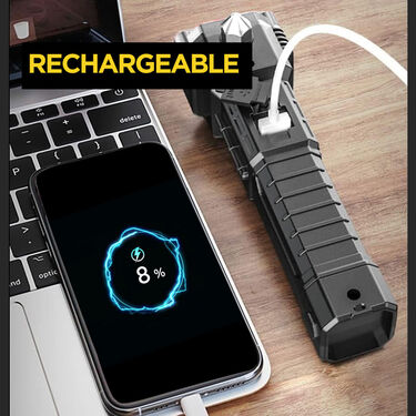 With six essential functions combined in one device, it offers a flashlight, hammer, cutter, emergency light, and power bank, making it highly versatile.