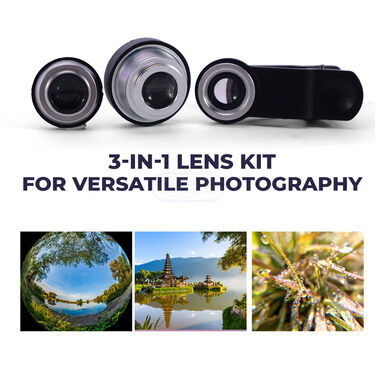 The Complete Camera Lens Kit for Mobile is a must-have for any photography enthusiast looking to capture stunning images with their smartphone. With a 3 in 1 design, it allows you to explore different photography styles, whether itâ??s wide landscapes, close up shots, or creative fisheye images.