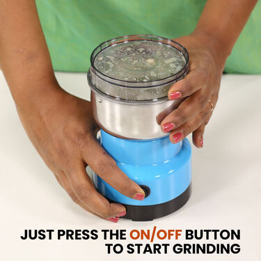Experience the ultimate convenience in your kitchen with our Portable Electric Grinder. Perfect for grinding coffee beans, dry spices, dry fruits, and chutney, this grinder delivers quick results in just seconds. Its food-grade stainless steel body ensures durability and safety for your food. With a see-through lid, you can easily monitor the grinding process. Featuring a 300ml capacity and a powerful 300W motor, it offers efficiency and convenience in one compact design. Whether you're preparing daily masalas or chutneys, this grinder is your perfect kitchen companion. Easy to use with just the press of a button, it's a must-have for every modern kitchen