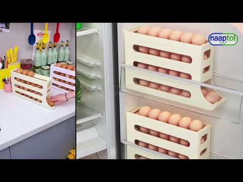 This 4-tier automatic rolling egg storage tray is designed to maximize refrigerator space while holding up to 30 eggs. Its clever 7-degree tilt design and open top ensure easy egg placement and automatic rolling to fill vacant spots. The large capacity yet compact design keeps your eggs fresh and neatly organized. With added railing protection and a deepened slide rail groove, eggs are securely stored, preventing breakage. Made from high-quality, durable material, this tray offers long-term usability and resilience. The space-saving design helps reduce clutter and keeps your kitchen tidy.